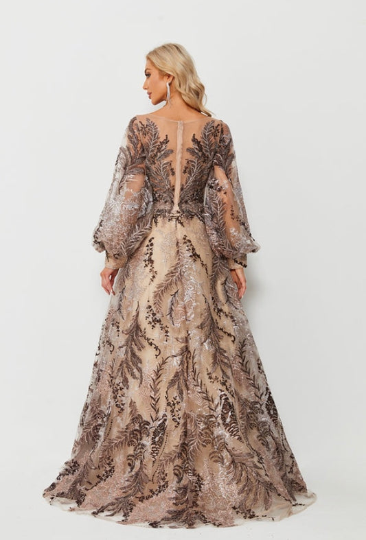 Glittered illusion Sweetheart Neckline long Dress
